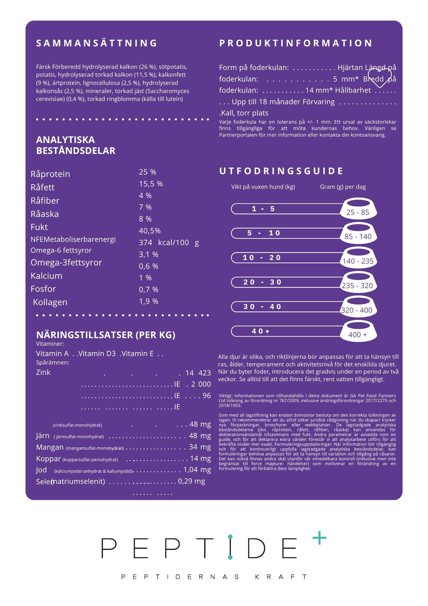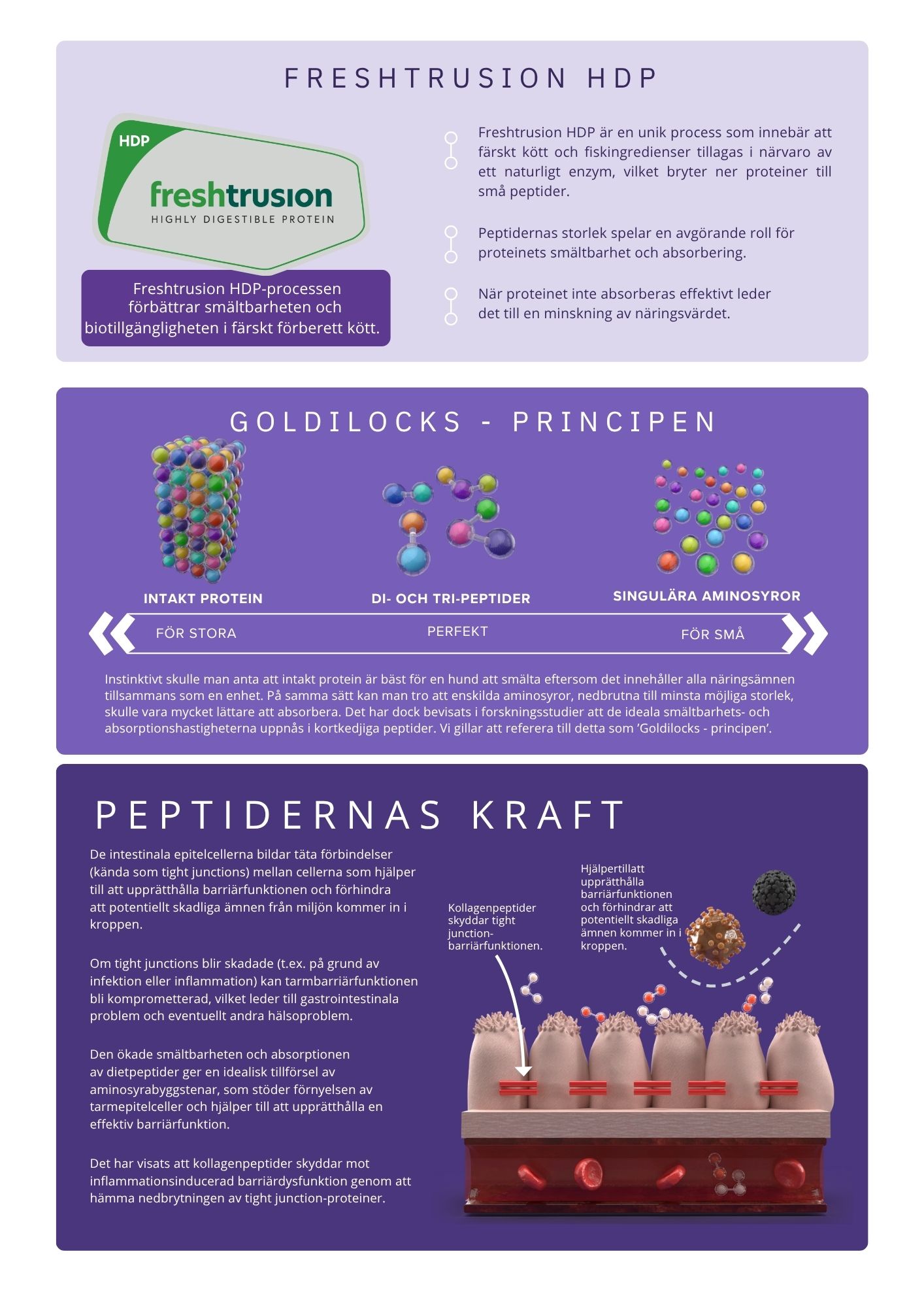 Med hjälp av hydrolyserat kalkonprotein och den unika Freshtrusion® HDP-processen bryts proteinerna ner till små peptider som är extremt lättsmälta – vilket ger en proteinsmältbarhet på hela 95 %, bekräftat i studier vid Ghent University Vet School.
