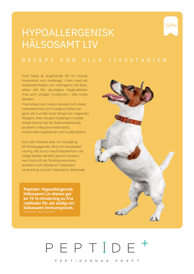 Ge din hund ett liv i balans med Peptide+ Hypoallergenisk Hälsosamt Liv – ett helfoder utvecklat för att möta moderna hundars behov genom vetenskap, innovation och naturlig näring.