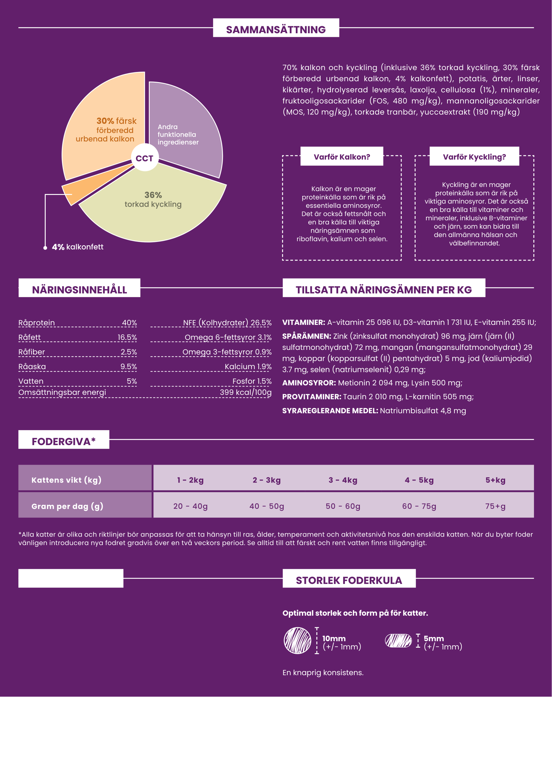 (inkl. 36 % torkad kyckling, 30 % färsk förberedd urbenad kalkon, 4 % kalkonfett)